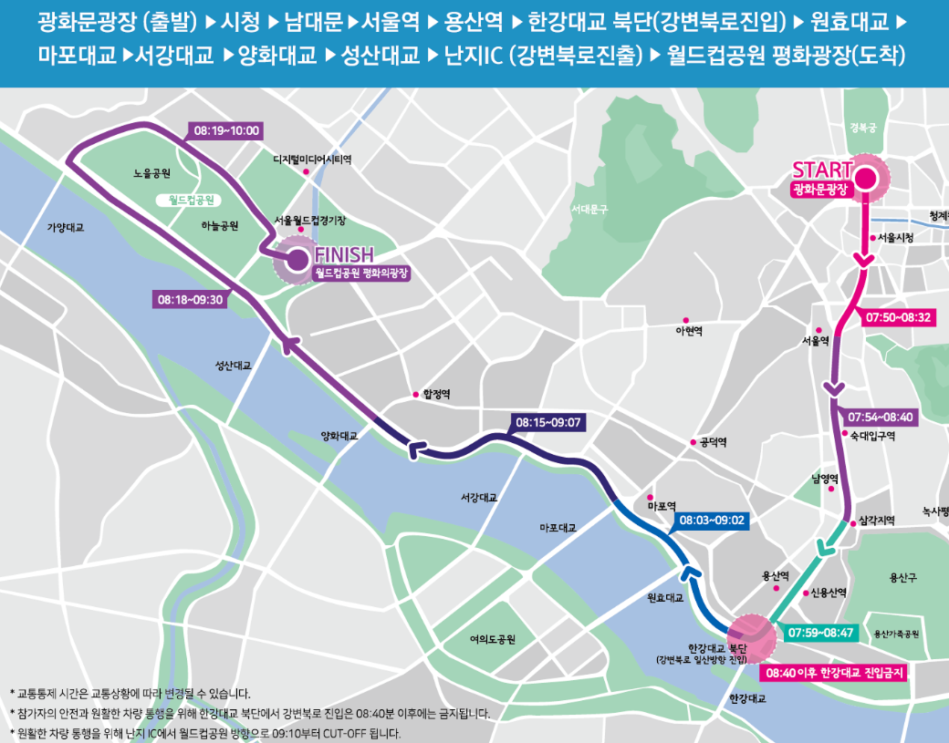 - 광화문 → 강변북로 → 월드컵공원 평화광장